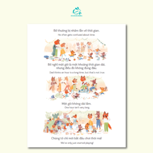 Các bạn nhỏ đã bao giờ gặp phải trường hợp bố mẹ vội vàng nhắc nhở “Nhanh lên con, sắp muộn học rồi!”, nhưng bản thân mình lại thấy “Con còn nhiều thời gian lắm, đủ để đọc hết một cuốn sách cơ” chưa? Gia đình bạn cáo cũng giống y như vậy, cách tính thời gian của cáo nhỏ và bố rất khác nhau. Vậy thì cách tính của ai mới là chính xác nhất nhỉ?