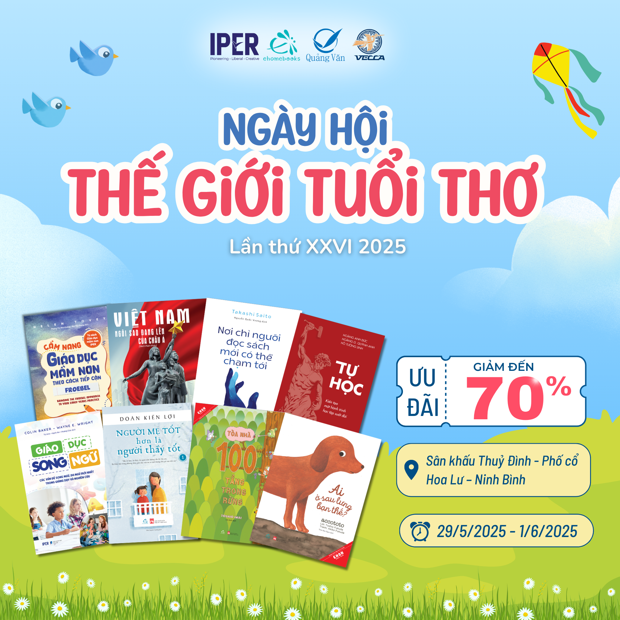 Từ ngày 29/5 đến 2/6/2025, tại Sân khấu Thùy Đình – khu Phố cổ số 01, Trần Hưng Đạo, phường Tân Thành, TP. Hoa Lư, Ninh Bình, diễn ra Ngày hội Thế giới Tuổi thơ lần thứ XXVI – 2025. Đây là sự kiện văn hóa – giáo dục thường niên, chào mừng Ngày Quốc tế Thiếu nhi 1/6, hứa hẹn mang đến một không gian rực rỡ sắc màu, tràn đầy tiếng cười và niềm vui học hỏi cho các em nhỏ.
